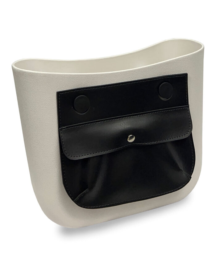 Use o bolso externo preto para montar sua bolsa! É só escolher seu baú, recheio e alças para criar um look #DoSeuJeito!