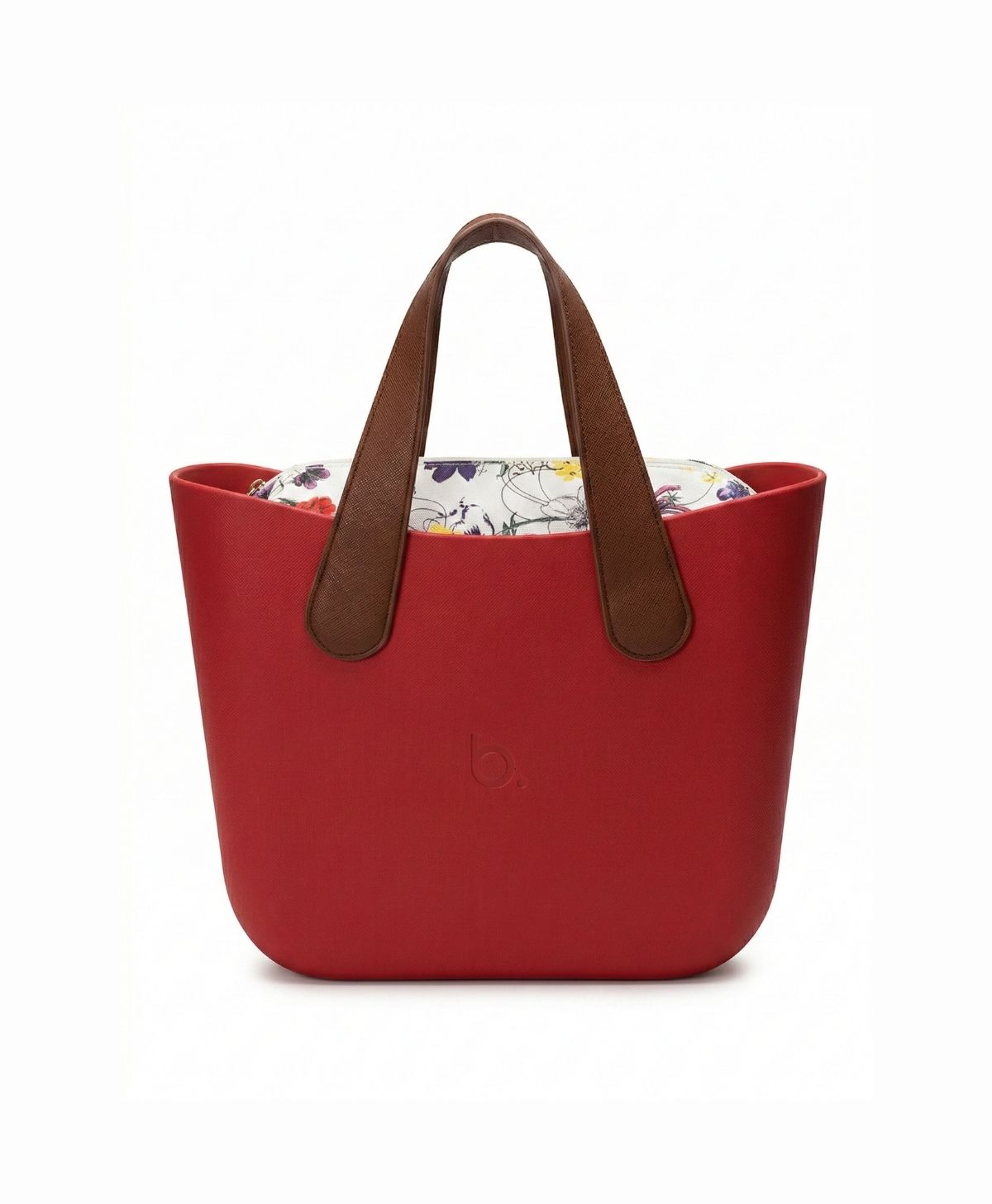 Baú b.smart vermelho + Recheio corino branco e barra florida + Alça de mão flat marrom