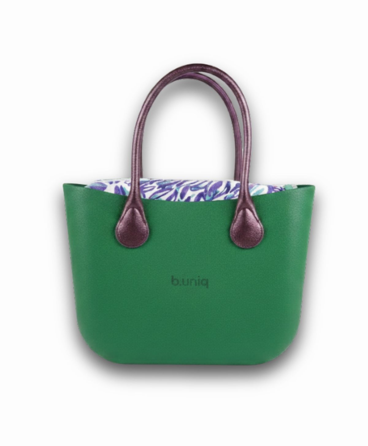 Baú b.super verde musgo + Recheio flores roxa + Alça de ombro gota roxa metálica